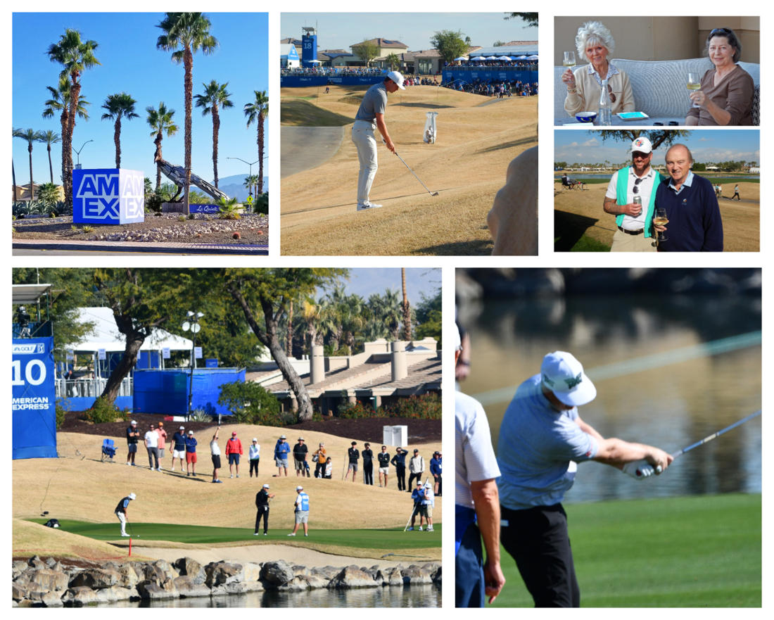 The annual American Express golf tournament - we're on the Stadium Course 18th fairway