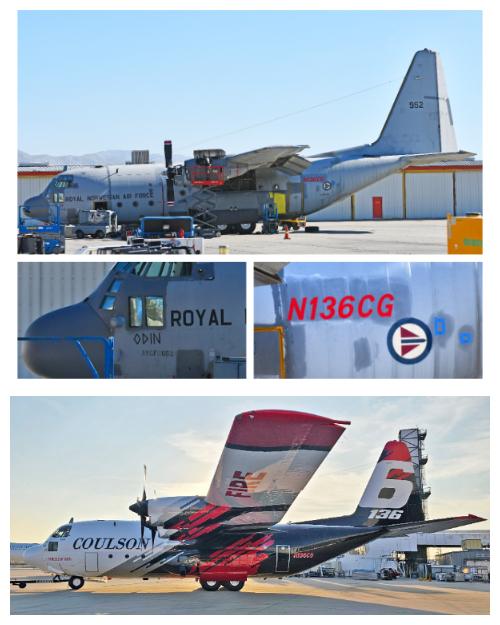 A former Royal Norwegian Air Force C-130 is converted to an aerial firefighting tanker at Jacqueline Cochran Regional Airport