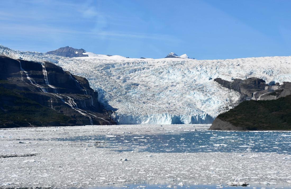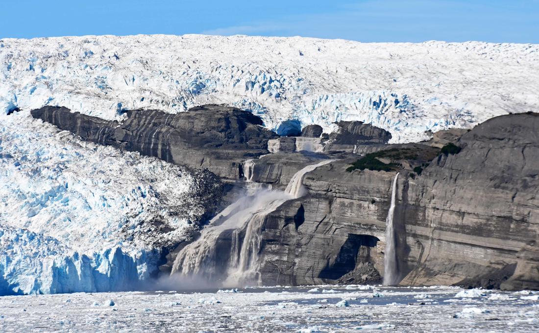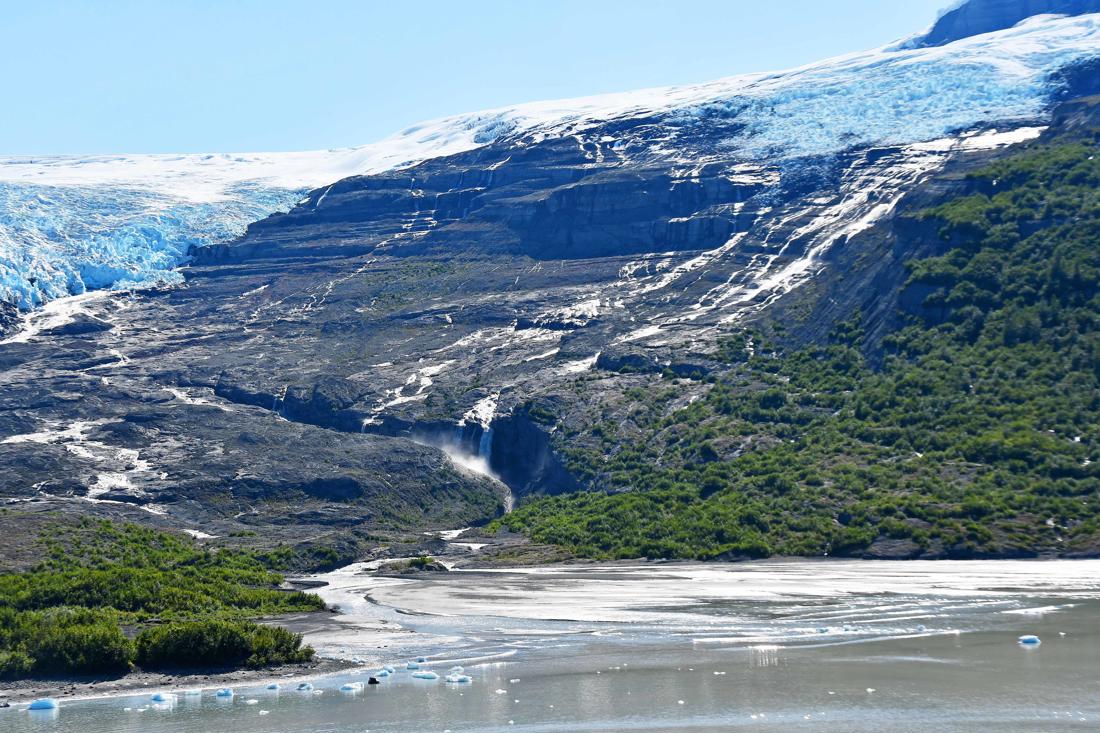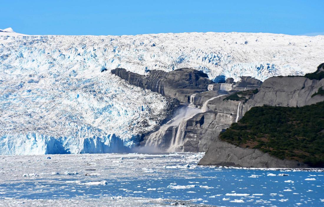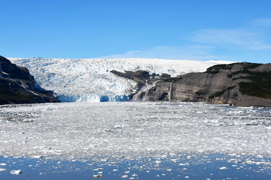 The Icy Bay glaciers—Guyot, Yahtse, and Tyndall—are large tidewater and valley glaciers that feed into Icy Bay in the Wrangell-Saint Elias region of southeast Alaska. Over the past century, these glaciers have retreated dramatically, carving out what is now a multi-armed fjord more than 30 miles long, where once there was a nearly straight ice front at the coastline.