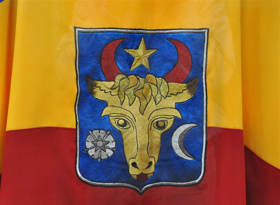 Moldovan flags on Arch of Triumph and the main government administration building