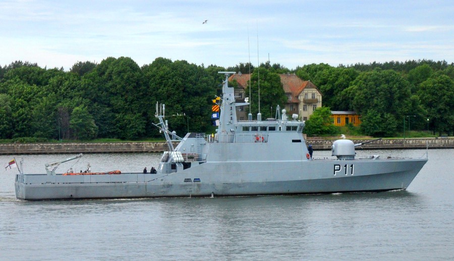 Lithuanian Naval Force P11 Žemaitis Flyvefisken-class patrol vessel, built in 1985 and acquired from Denmark in 2008.