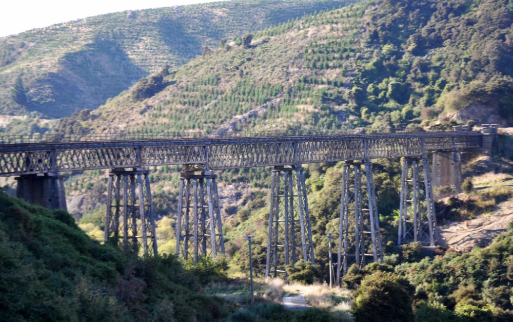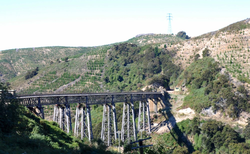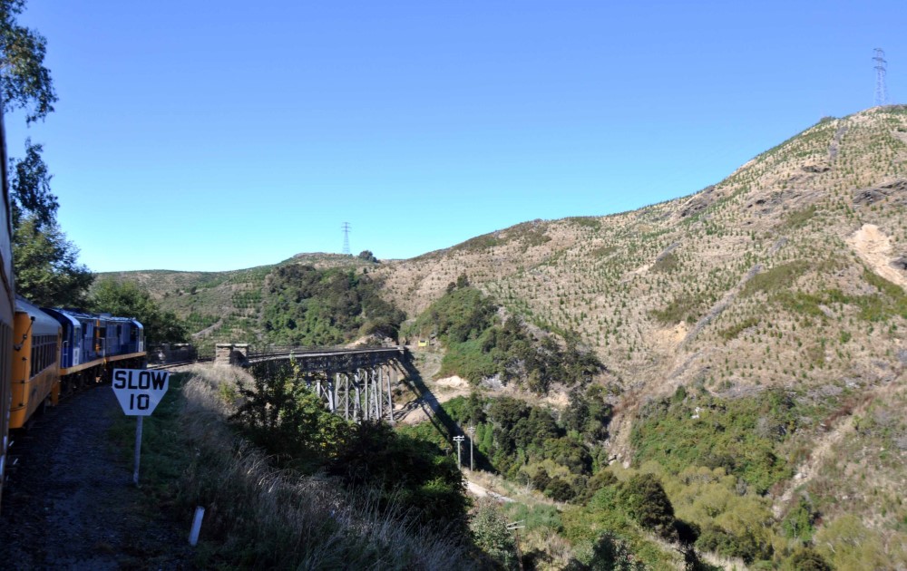 The line travels through spectacular scenery along the banks of the Taieri River, through numerous tunnels and climbing along the Taieri Gorge to the Strath Taieri. It crosses a dozen viaducts, including the southern hemisphere's largest wrought iron structure, and passes through ten tunnels.