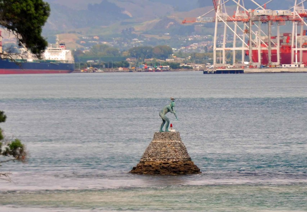 Statue of Tangaroa, Maori God of the Ocean, in the harbor