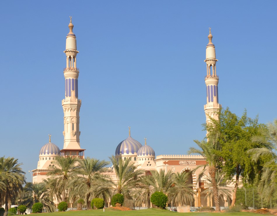 In 1992, Sultan Qaboos directed the of a Grand Mosque. It took six years and seven months to build. The mosque was inaugurated by the Sultan on May 4, 2001. The mosque is built from 300,000 tons of Indian sandstone. The main prayer hall is square (244 feet per side) with a central dome rising to a height of 164 feet above the floor. The main hall can hold over 6,500 worshippers, while the women’s can accommodate 750 worshipers. The outer paved ground can hold 8,000 worshipers and there is additional space available in the interior courtyard and the passageways, making a total capacity of up to 20,000 worshipers The prayer carpet which covers the floor of the prayer hall contains 1.7 billion knots and weights 21 tons. It took fours years to make and is the second largest single piece carpet in the world. The chandelier above the praying hall is 46 feet tall and was made in Italy – it is the largest chandelier in the world.