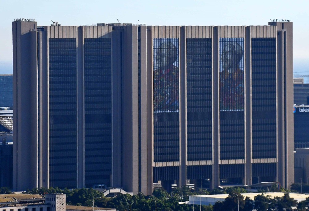 Images of Desmonf Tutu and Nelson Mandela on the Civic Centre