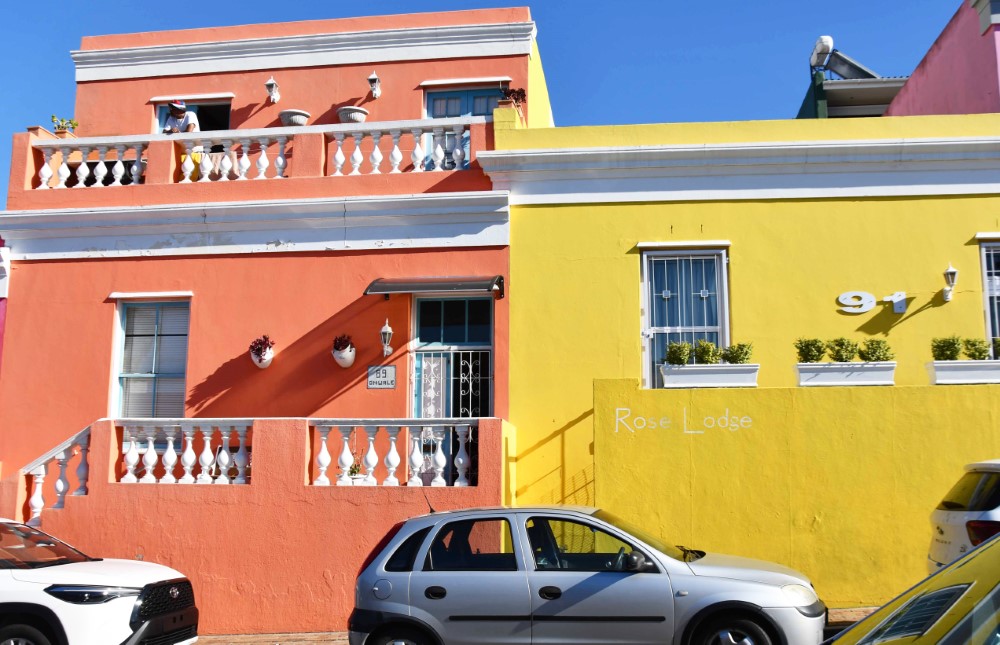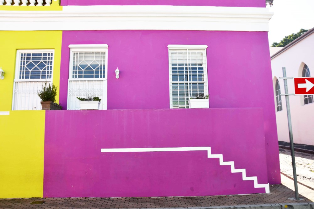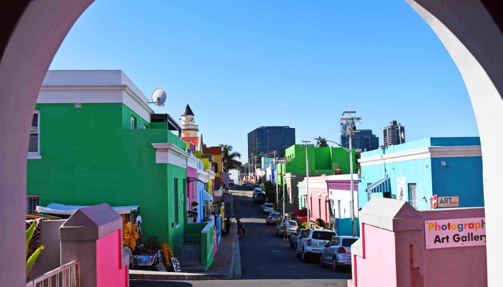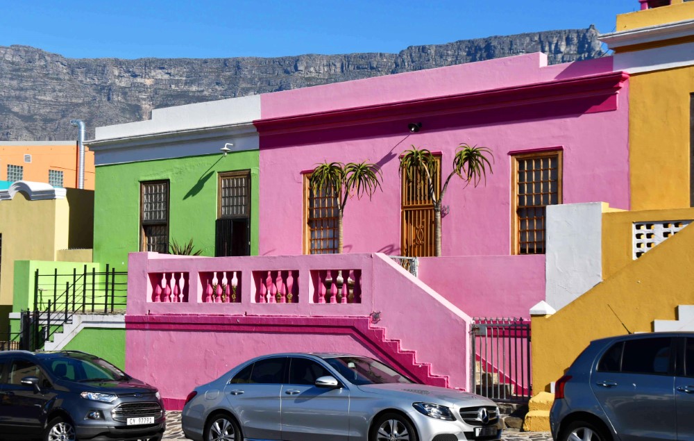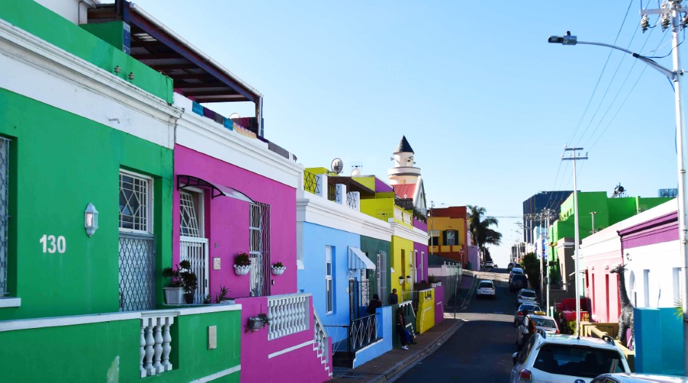 These colorful buildings are in the Bo Kaap area of Cape Town