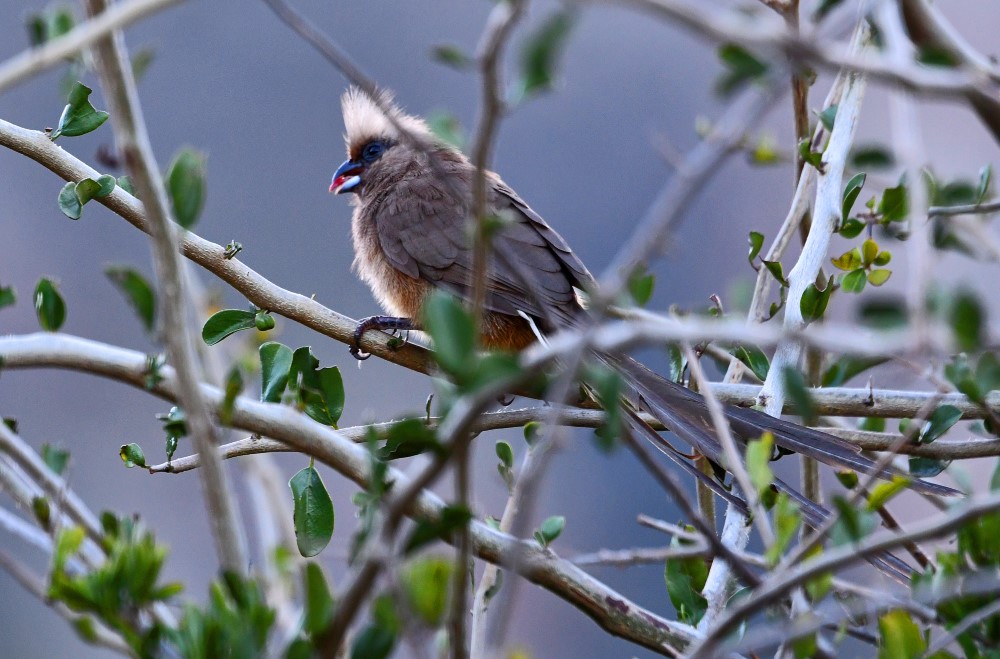 Speckled mousebird in the Botanical Gardens