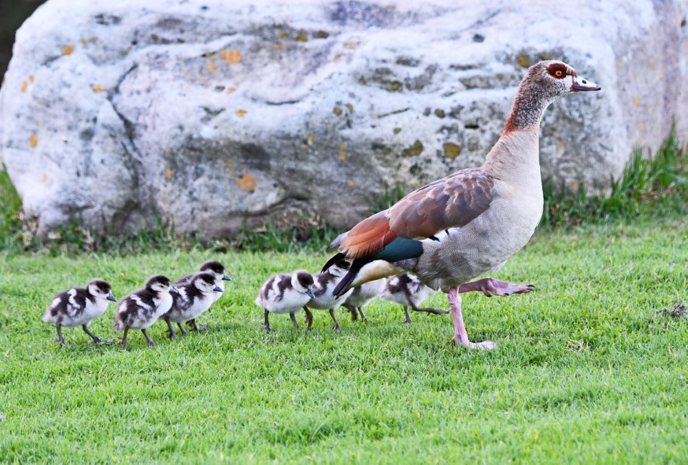 Egyptian goose and her goslings in the Botanical Gardens